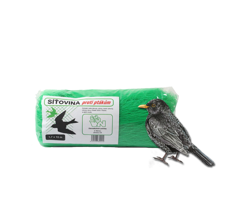 Das Netz wird aus Polypropylen durch eine spezielle Technologie ohne Weben oder Stricken hergestellt. Sie werden zum Schutz von Beeren, kleinem Steinobst, Reben usw. verwendet. Die Maschen der Netze sind 2,5 x 2,5 cm und verhindern so, dass Vogelschädlinge die geschützte Pflanze erreichen.