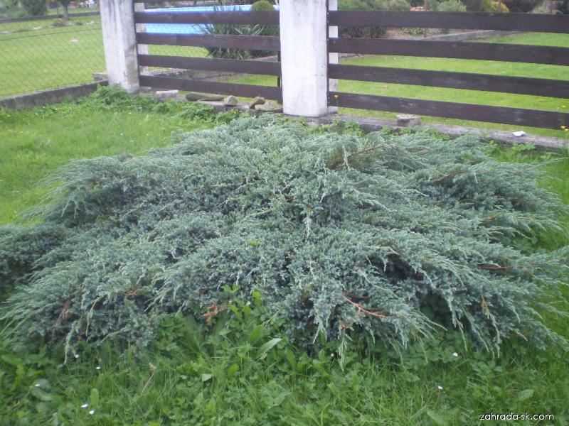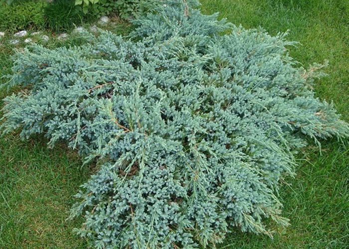BLUE CARPET ist ein kriechender, relativ schnellwüchsiger, nadeliger Strauch, der einen dichten Teppich bildet. Nach 10 Jahren erreicht er eine Höhe von etwa 50 cm und einen Durchmesser von 150-200 cm. Der Strauch hat steife, leicht aufragende Triebe, die sich seitlich ausbreiten. Die Nadeln sind kurz, stachelig, von blaugrauer Farbe und mit einer wachsartigen Schicht überzogen. Er gedeiht gut in allen leichten und durchlässigen Böden. Ein sonniger oder halbschattiger Standort ist ideal.