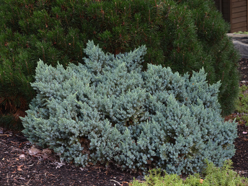 Eine sehr hübsche Pflanze dank ihrer silber-blauen Farbe. Sie wächst langsam, ist eine Zwergpflanze mit einem kugelförmigen bis sternförmigen Wuchs. Sie verträgt sowohl Sonne als auch Halbschatten und lehmig-sandigen Boden. Aufgrund ihrer Größe ist sie sowohl für Steingärten als auch für Töpfe geeignet. Sie braucht keinen Rückschnitt.