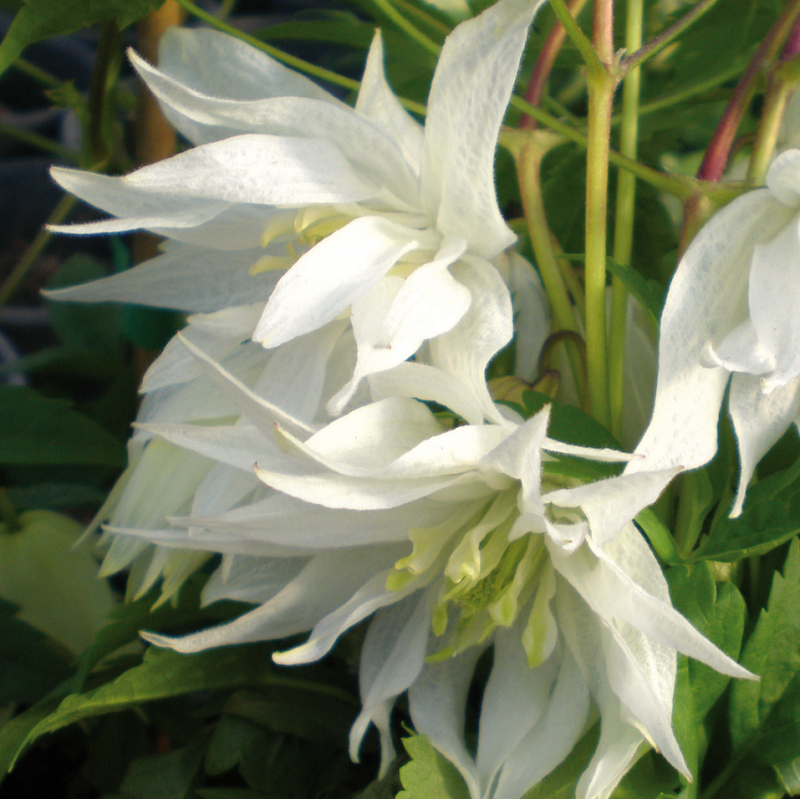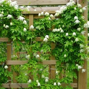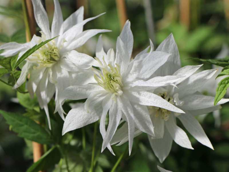 Clematis Albina Plena ist eine außergewöhnliche Clematis mit einer glockenförmigen gefüllten Blüte. Sie erreicht einen Durchmesser von bis zu 12 cm und was für eine Freude - sie ist eine remontierende, d.h. mehrfach blühende Clematis. Die einzelnen Blüten sind cremeweiß, die Staubgefäße sind gelb. Sie blüht im Mai und später im Spätsommer. Die Blätter sind tiefgrün und dekorativ, 18 bis 20 cm groß.