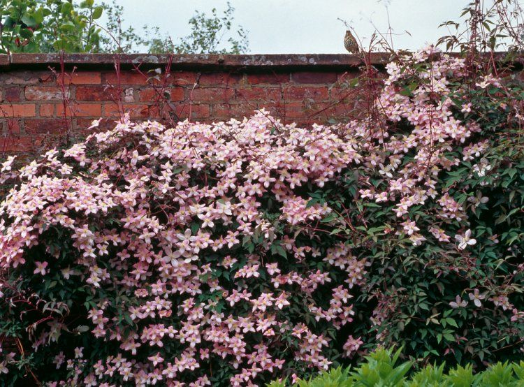 Clematis Elizabeth ist eine kletternde und üppig blühende Clematis. Die großen Blüten mit einem Durchmesser von 15 cm haben blassrosa bis weiße Blütenblätter. Die Mitte der Blüte ist gelb. Die Form der Blüten ist variabel. Die Blüten dieser schönen Sorte erscheinen im späten Frühjahr/Sommer. Sie kann im Frühherbst wieder blühen, nachdem die abgestorbenen Blüten entfernt wurden. Sie kann in Töpfen gepflanzt werden. Er braucht eine stehende Stütze; bei ausreichender Sonneneinstrahlung blüht der ganze Strauch.