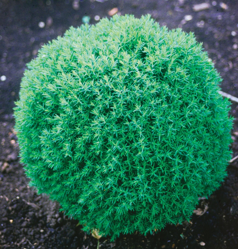 Eine dichte, zwergige, kugelförmige Pflanze mit weichen Nadeln. Sie wächst sehr langsam und erreicht eine maximale Höhe von 0,5 m. Ein Rückschnitt ist nicht erforderlich. Geeignet für Steingärten, Vorgärten oder Blumenbeete.