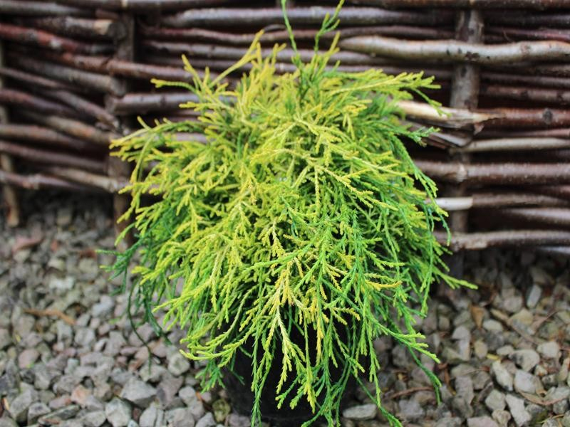Die leuchtend gelbe Färbung seiner Nadeln, wird jeden Garten aufhellen und verschönern. Er ist leicht zu züchten und zu beschneiden. Sie eignet sich für Gruppenpflanzungen, ist aber als Solitär in Steingärten oder Beeten am schönsten.