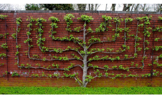 Tento nádherný živý plot je vytvorený z jabloní. Prednosti tohto plotu snáď ani nie je potrebné rozoberať. Krása, úžitok, funkčnosť. Je však potrebné zvoliť rýchlejšie rastúci podpník ako napríklad MM106.