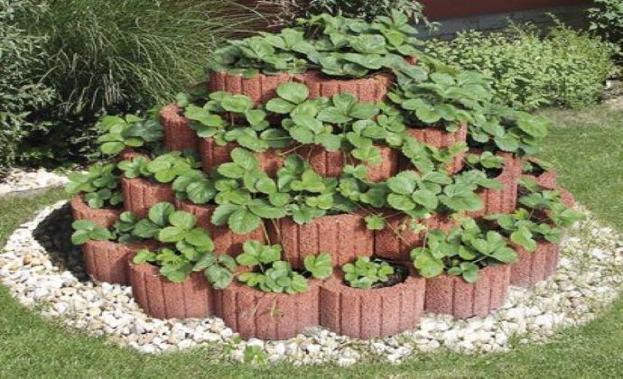 Jahody sa v tomto záhone pestujú v obklúčení kvetín a zeleniny.