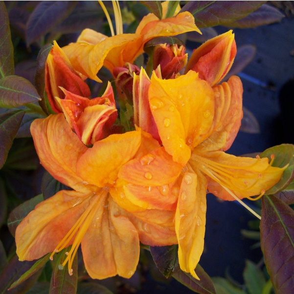 Drevitá azalka s prekrásnymi kvetmi sýto zlato-oranžovej farby. Kvitne od mája do júna, dorastá do 2 m. výšky a rovnakej šírky. Opadavé azalky sú vresoviskové rastliny, ktoré na rozdiel od japonských, milujú plné slnko za predpokladu, že im zaistíme neustále vlhkú, kyselú zem s ph medzi 4- 5. Obľubujú ľahkú, nevápenatú, priepustnú pôdu s rašelinou, kompostom a povrchovým drevitým mulčom. Ťažké pôdy sa vyľahčujú doplnením piesku a jemnej borky. Dôležitá je kvalitná drenáž v ílovitých ťažkých pôdach. Zostrihané zhluky kvetov ihneď po odkvete odrežte. Korene sa nikdy nesmú nechať vyschnúť.