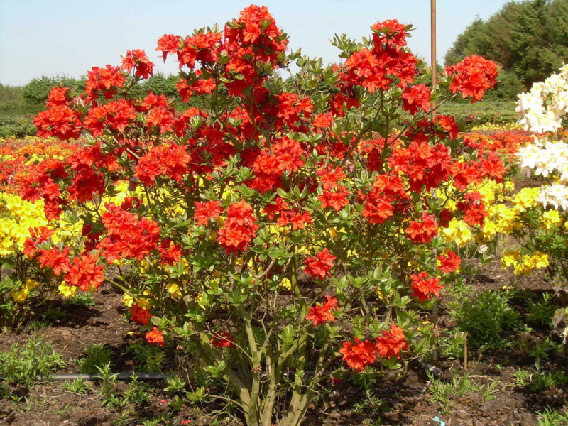 Tzv. drevité - opadavé azalky patria medzi spoľahlivo najkrajšie kvitnúce kríky na jar. Odroda ´Feuerwerk´ dorastá do výšky okolo 1,2 m , ktorá je príznačne pomenovaná ohňostroj. Vyniká výrazne ohnivo červenými kvetmi s oranžovým prelivom, pripomínajúcim jazyky plameňov. Kvety sú veľké, 7- 8 cm v priemere, jemnej vône, kvitnúce od polovice mája do začiatku júna. Opadavé azalky sú vresovis kové rastliny, ktoré na rozdiel od japonských, milujú plné slnko za predpokladu, že im zaistíme neustále vlhkú, kyselú zem s ph medzi 4- 5. Obľubujú ľahkú, nevápenatú, priepustnú pôdu s rašelinou, kompostom a povrchovým drevitým mulčom. Ťažké pôdy sa vyľahčujú doplnením piesku a jemnej borky. Dôležitá je kvalitná drenáž v ílovitých ťažkých pôdach. Zostrihané zhluky kvetov ihneď po odkvete odrežte. Korene sa nikdy nesmú nechať vyschnúť.