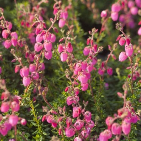 Táto nízka rastlina dorastá do výšky najviac 60 cm. Rastie kríčkovito a patrí medzi vždyzelené rastliny. Tvoria ju drobné listy, ktoré sú tmavo zelené. Kvety nesú najrôznejšie odtiene bielej, ružovej a purpurovej farby. Rastú v dlhých strapcoch a majú tvar drobného zvončeka. Plodom sú vajcovité kapsuly. Rastlina žiada zimné prikrytie čečinou. Zelené časti môžu namŕzať.